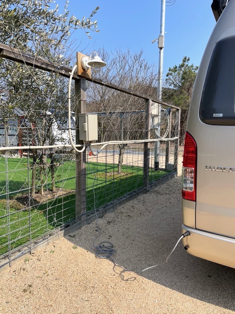 AC電源は玄関扉横とオリーブ苗木側の2ヶ所にございます。