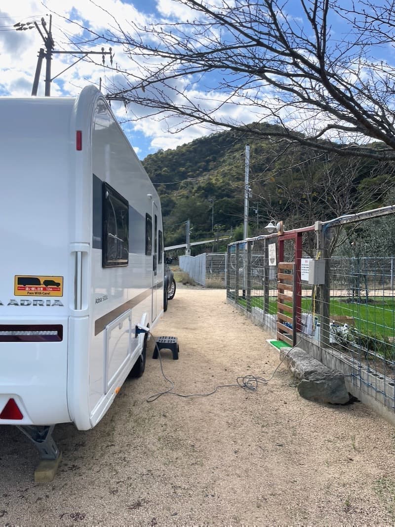 AC電源は玄関扉横とオリーブ苗木側の2ヶ所にございます。
